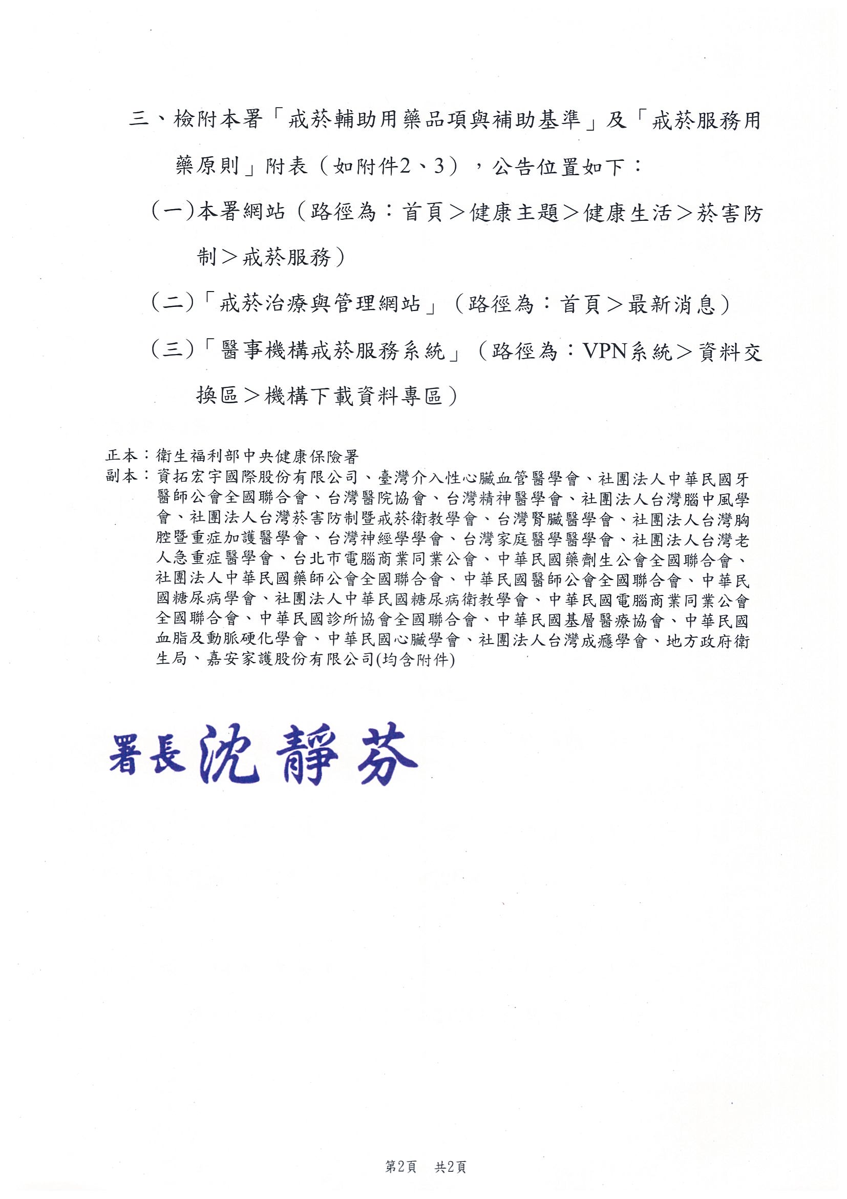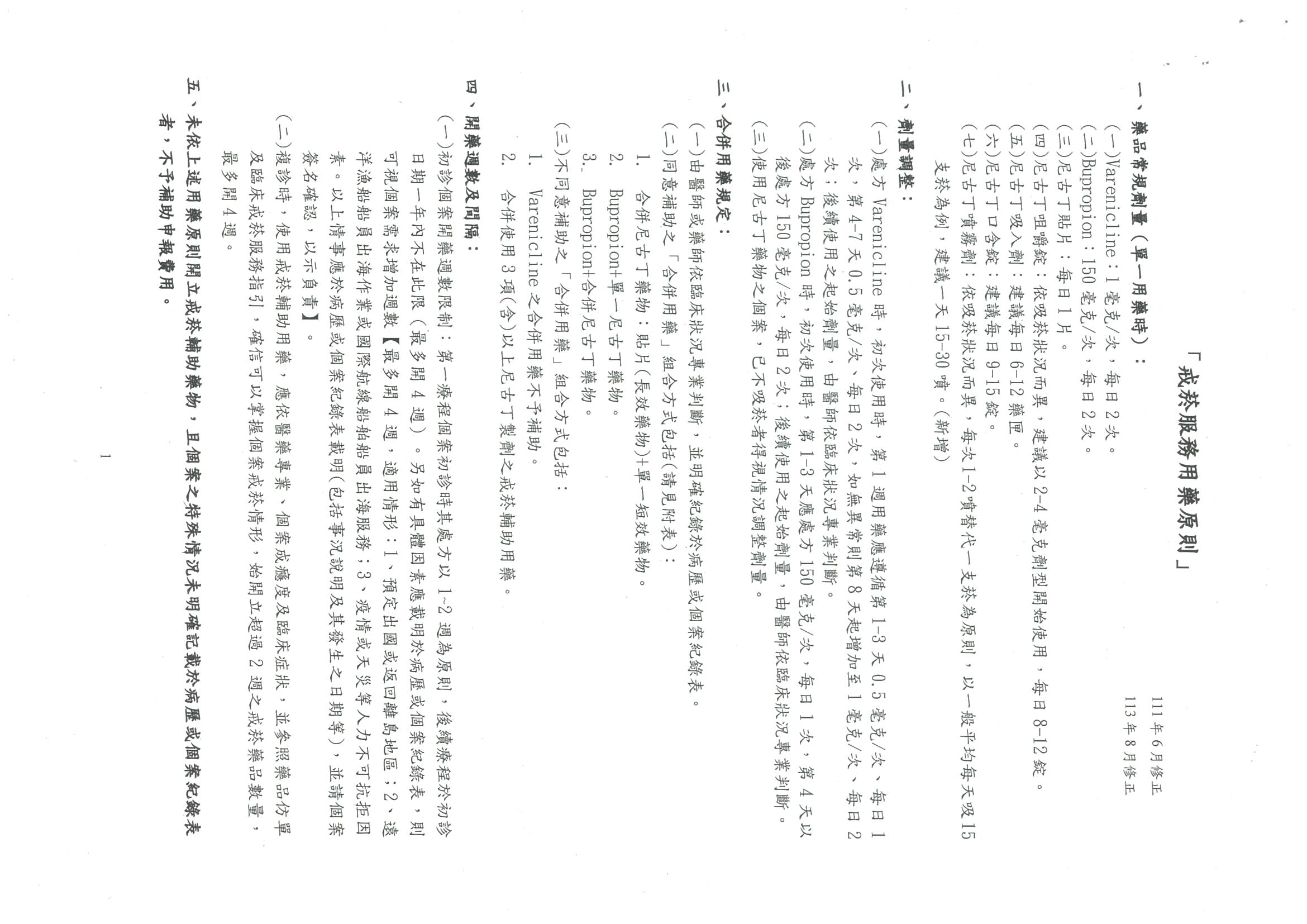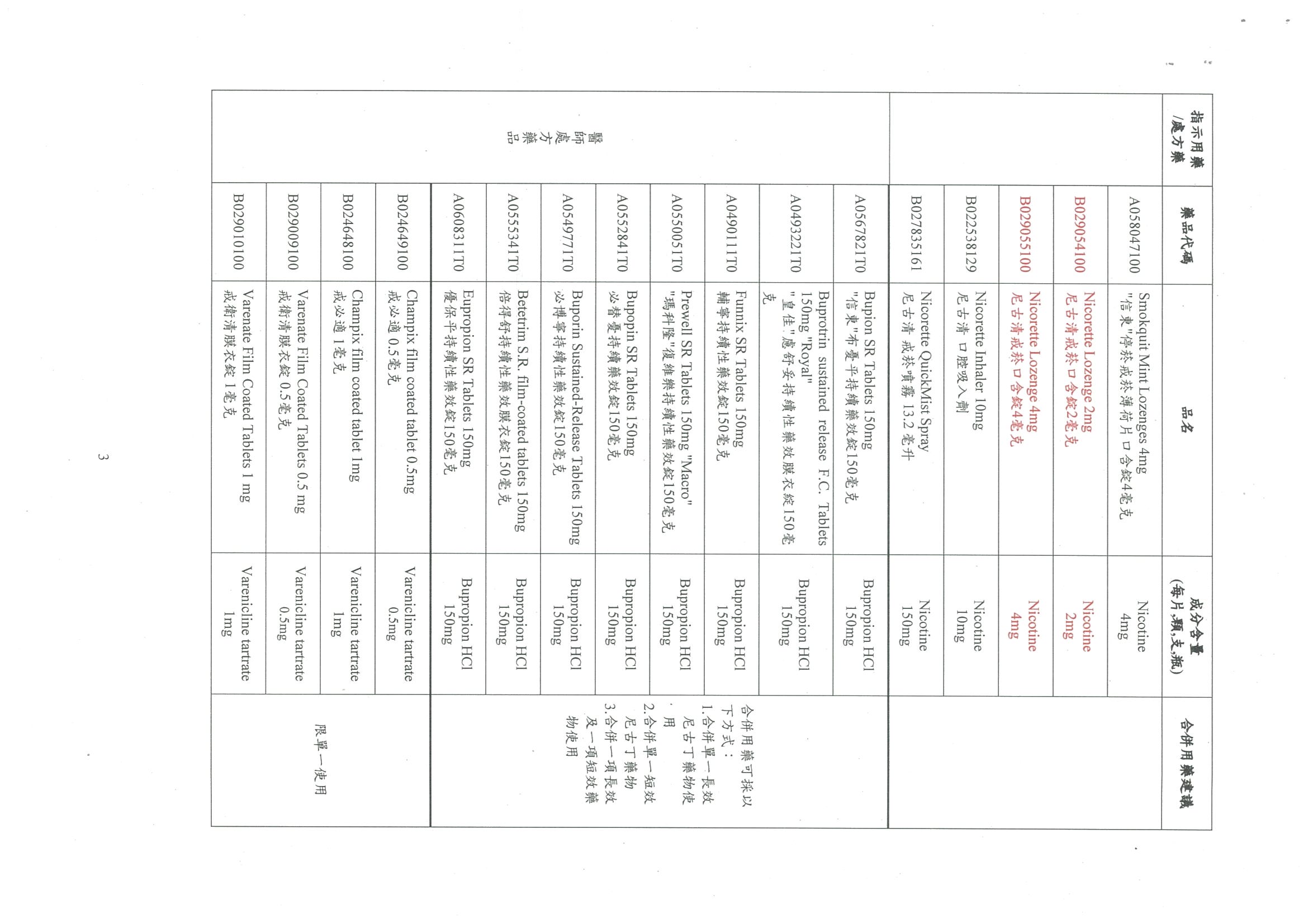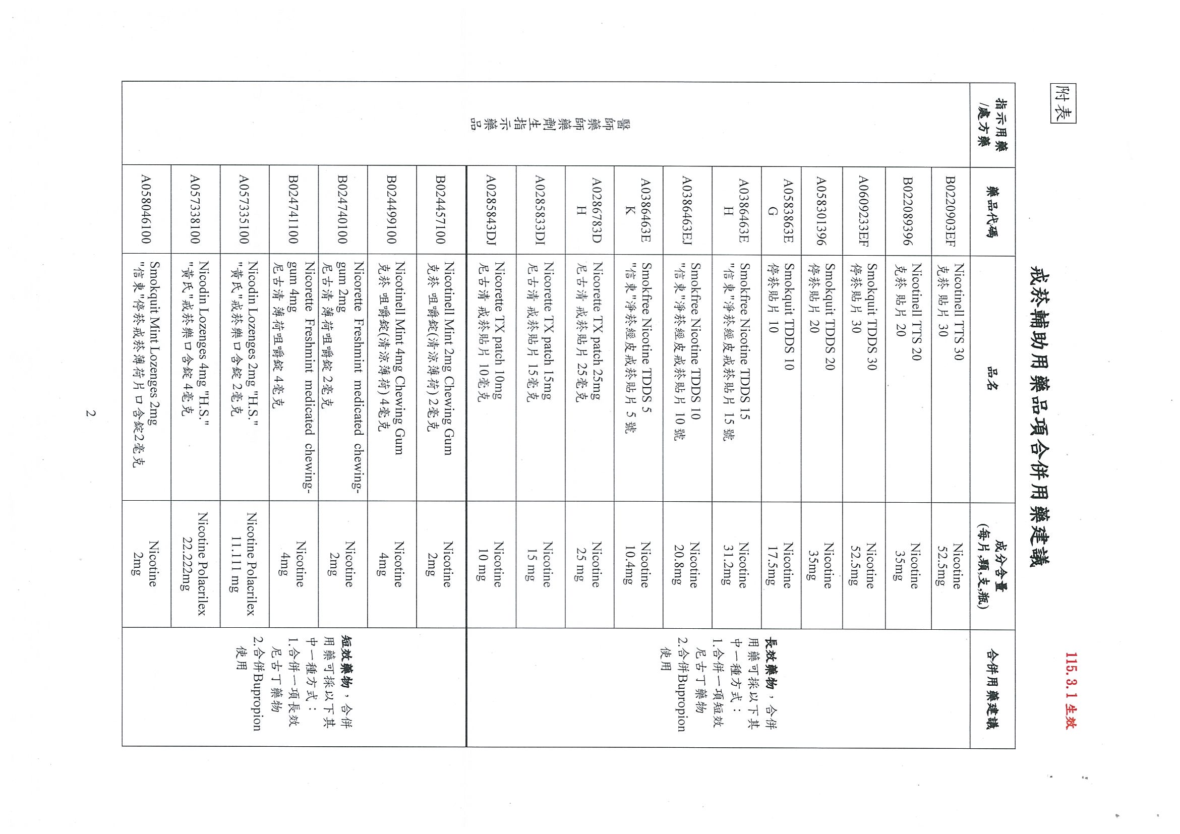 有關尼古清戒菸口含錠納入本署戒菸服務補助計畫之戒菸輔助用藥品項曁修正「戒菸輔助用藥品項與補助基準」,自115年3月1日起生效,復請查照。